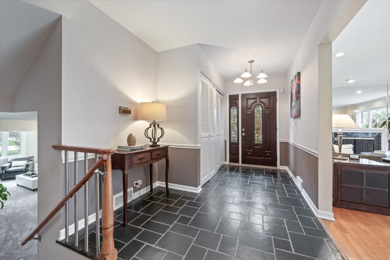 This oversized 5-bedroom, 3.5-bath home offers room for everyone on a picturesque, tree-lined street surrounded by impressive homes. The main level welcomes you with a generous living room featuring a fireplace and an expansive picture window that fills the space with natural light and showcases the beautiful landscaped yard. A formal dining room flows seamlessly to the patio-perfect for outdoor dining, grilling, and relaxing. The eat-in kitchen is equipped with granite countertops and stainless steel appliances. A convenient powder room completes the main floor. Just a half-level down, you'll find a bright and inviting family room, along with a laundry/mudroom and a rare attached two-car garage for everyday ease. Upstairs, the second floor offers four well-sized bedrooms and two full baths, including an ensuite, while the entire third floor is dedicated to a private primary suite. This retreat features a skylit spa bath, separate dressing areas, and multiple closets. The basement includes a finished office plus an unfinished mechanical room with HVAC, sump pump, and abundant storage. Lovingly maintained over the years, this home presents a fantastic opportunity to bring your vision to a truly special space in a sought-after location. Fireplace and steam shower have not been used by these owners and are conveyed as is.